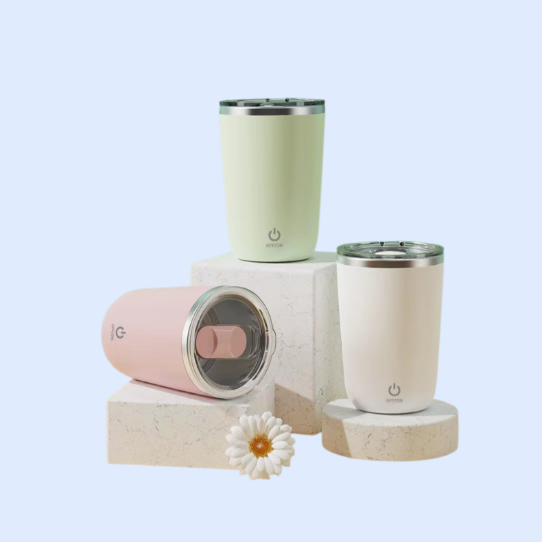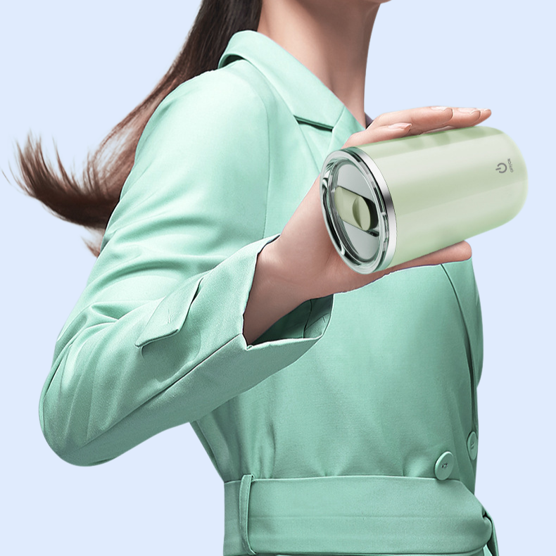 全自動撹拌機能と充電式設計で手間を省く。ステンレス製で保温性抜群。ポータブルで持ち運び便利。