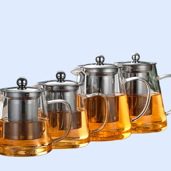 ストーブの周りのティーポット